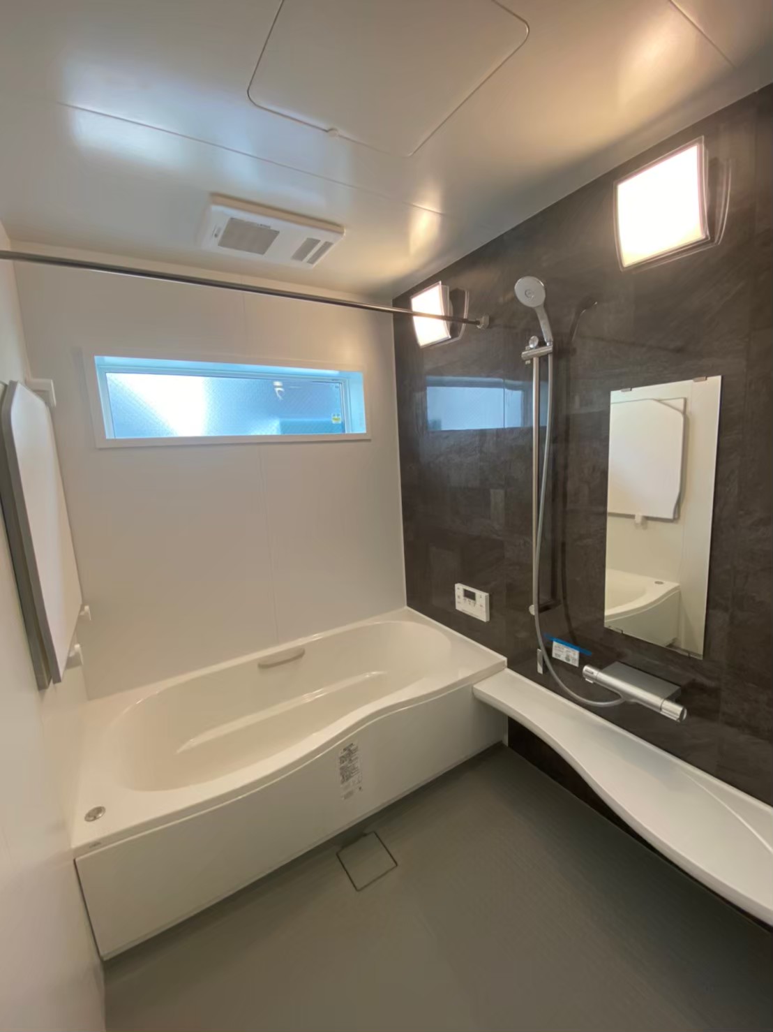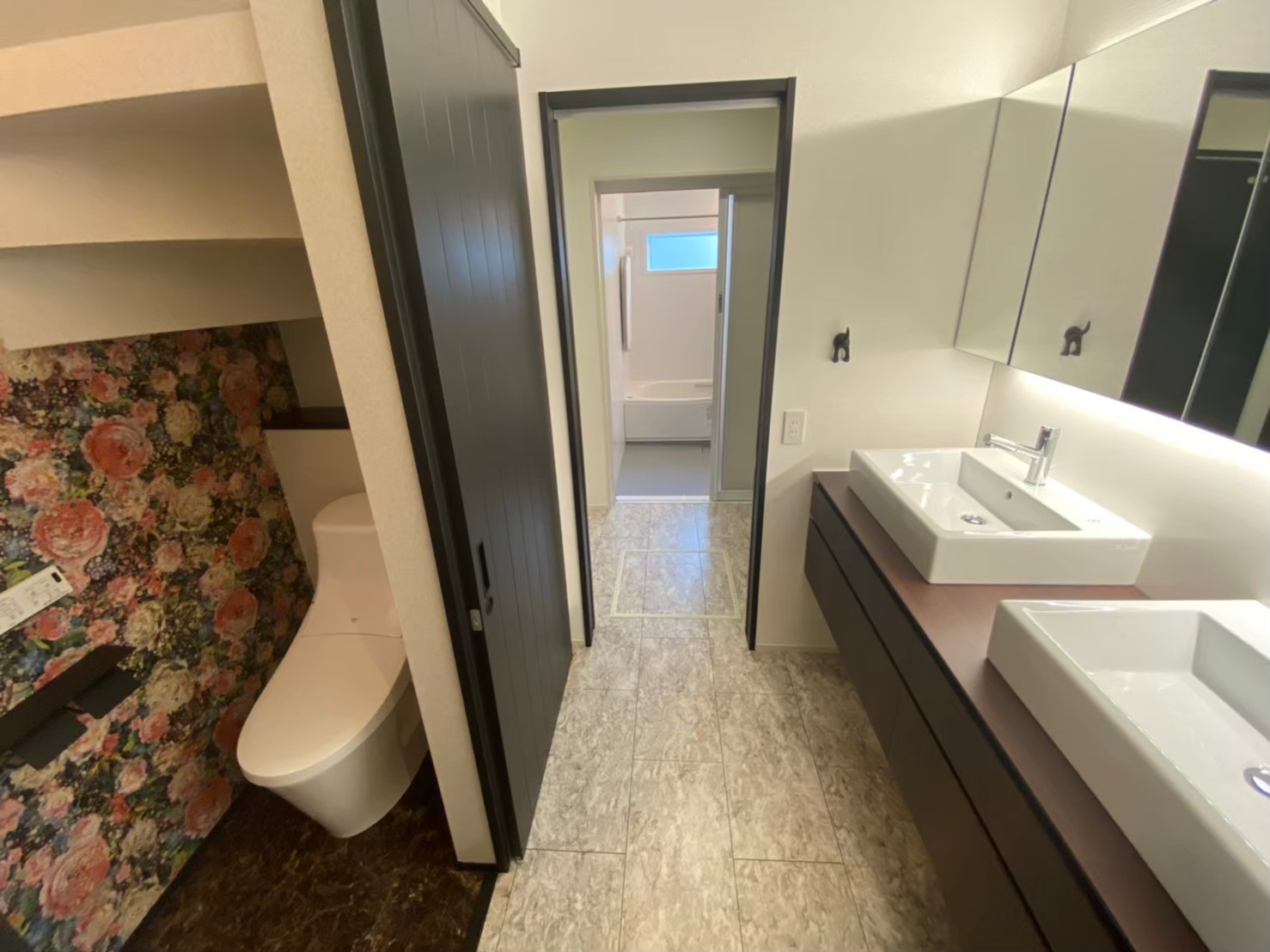 洗面台が二つあり床も石調で高級感漂います。
